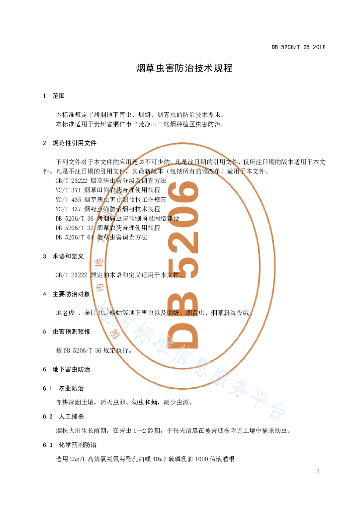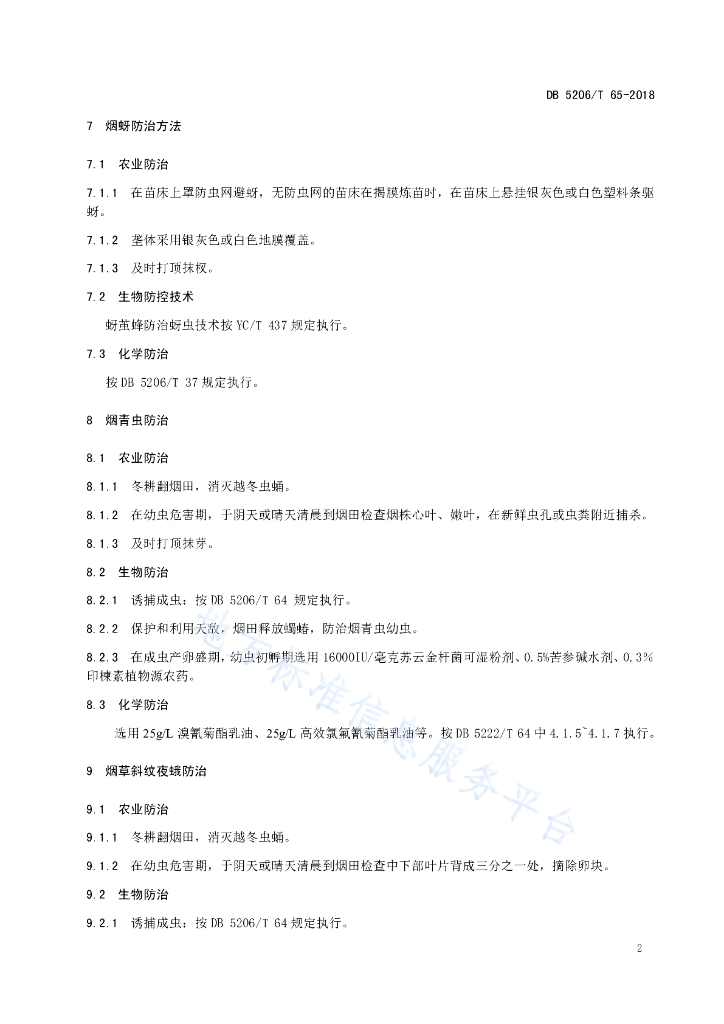 DB5206/T 65-2018 烟草虫害防治技术规程