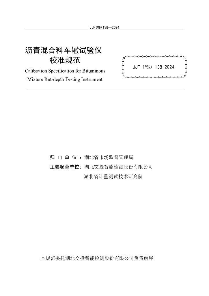 JJF(鄂)138-2024 沥青混合料车辙试验仪校准规范