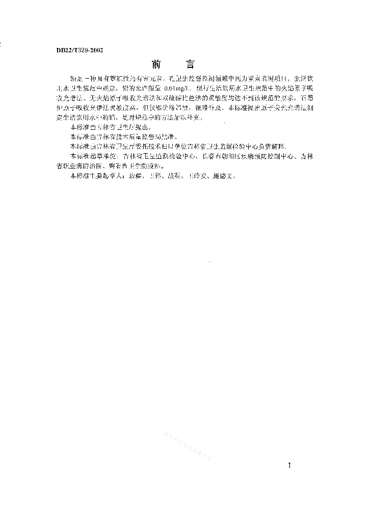 DB22/T 329-2002 原子荧光光谱法测定生活饮用水中的铅