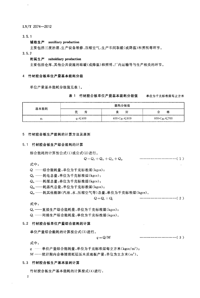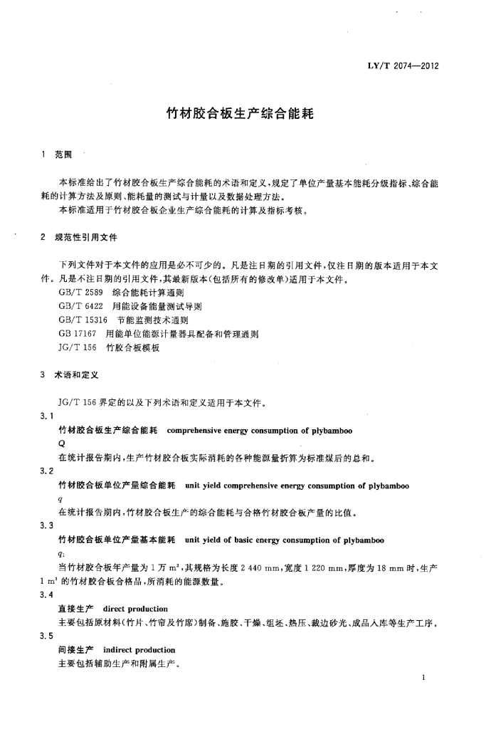 LY/T 2074-2012 竹材胶合板生产综合能耗