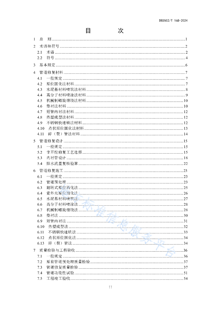 DB3502/T 168-2024 排水管道非开挖修复技术指南