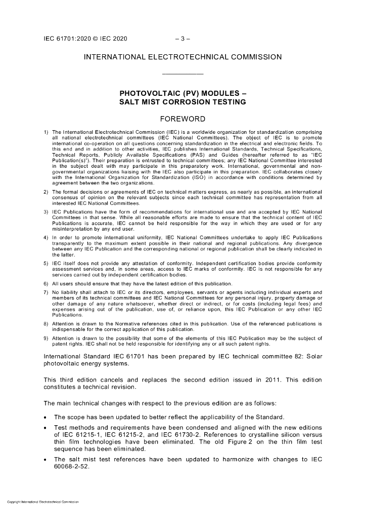 IEC 61701-2020 光伏组件盐雾腐蚀试验