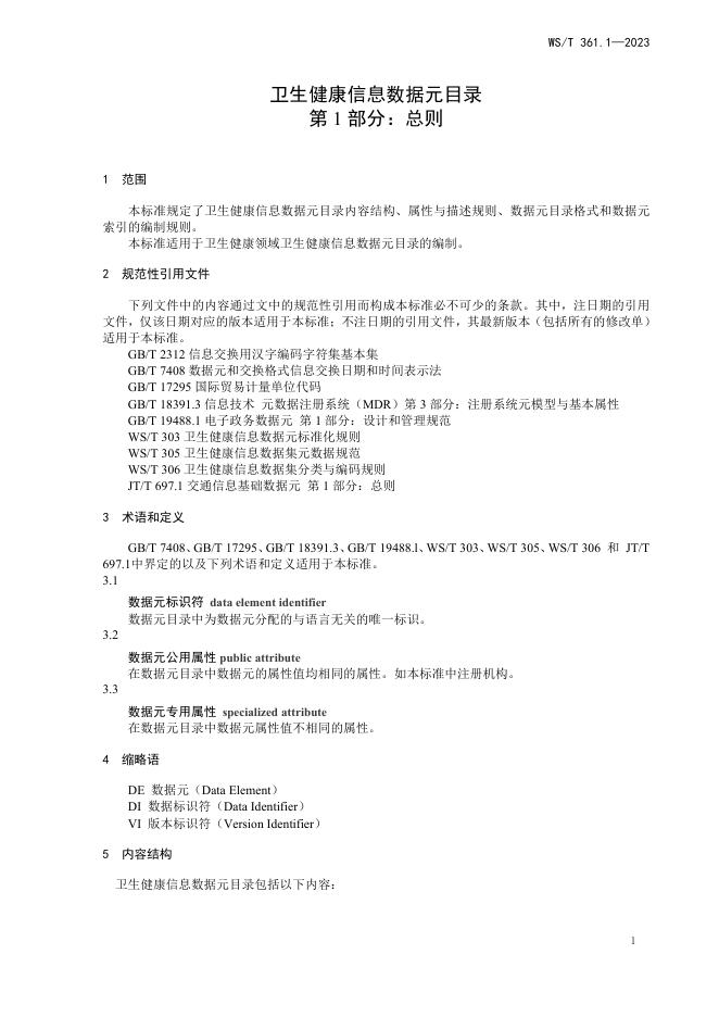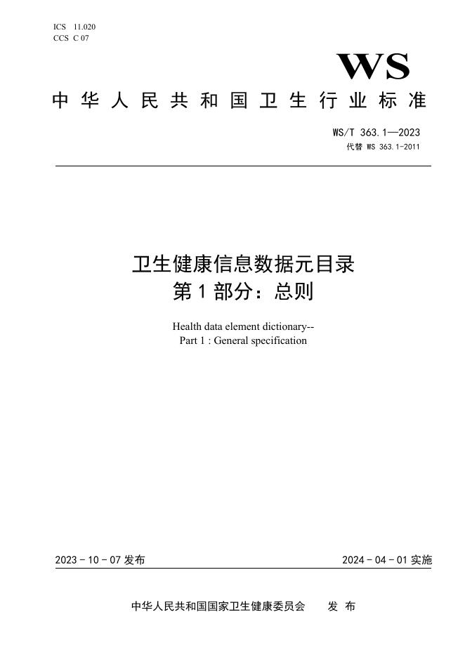 WS/T 363.1-2023 卫生健康信息数据元目录 第1部分:总则