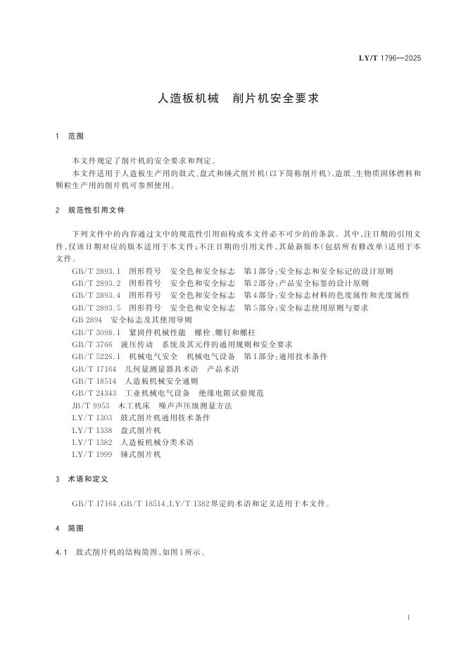 LY/T 1796-2025 人造板机械 削片机安全要求