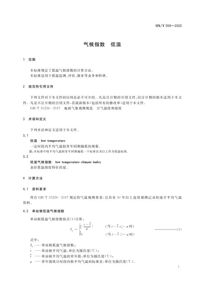 QX/T 558-2020 气候指数 低温