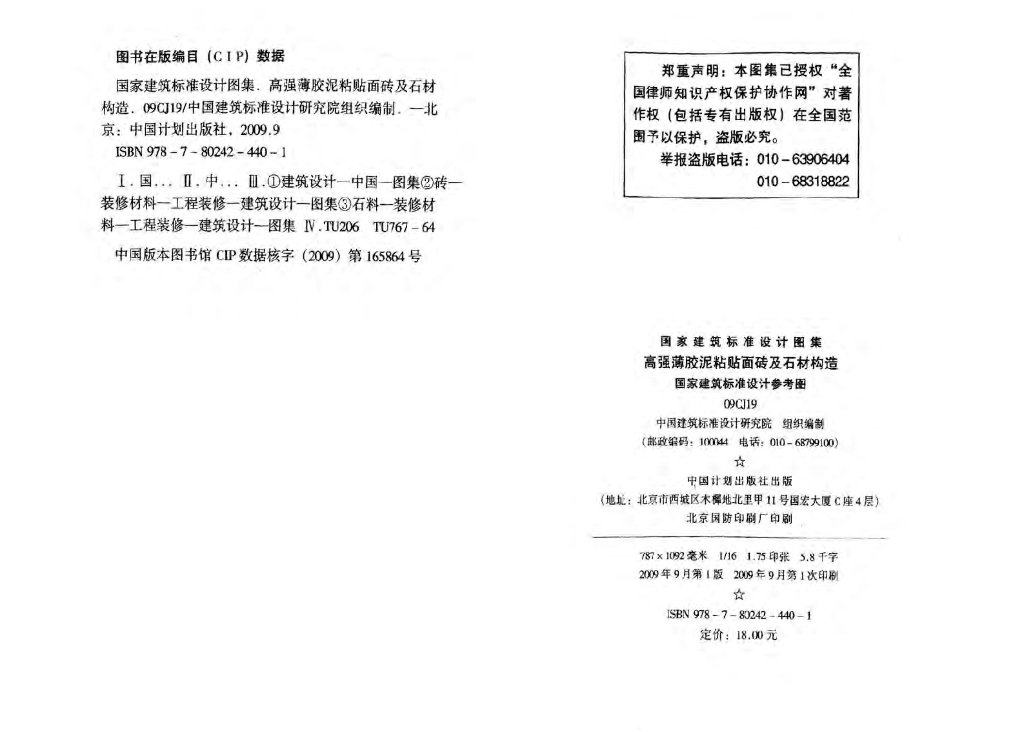 09CJ19 高强薄胶泥粘贴面砖及石材构造图集
