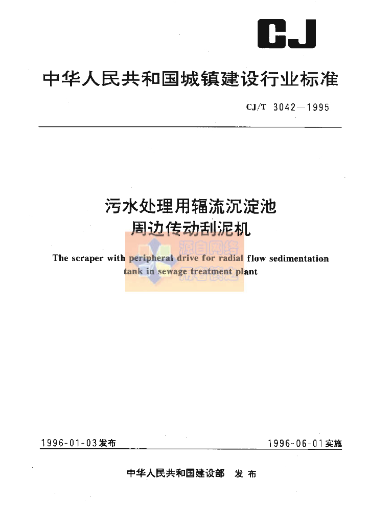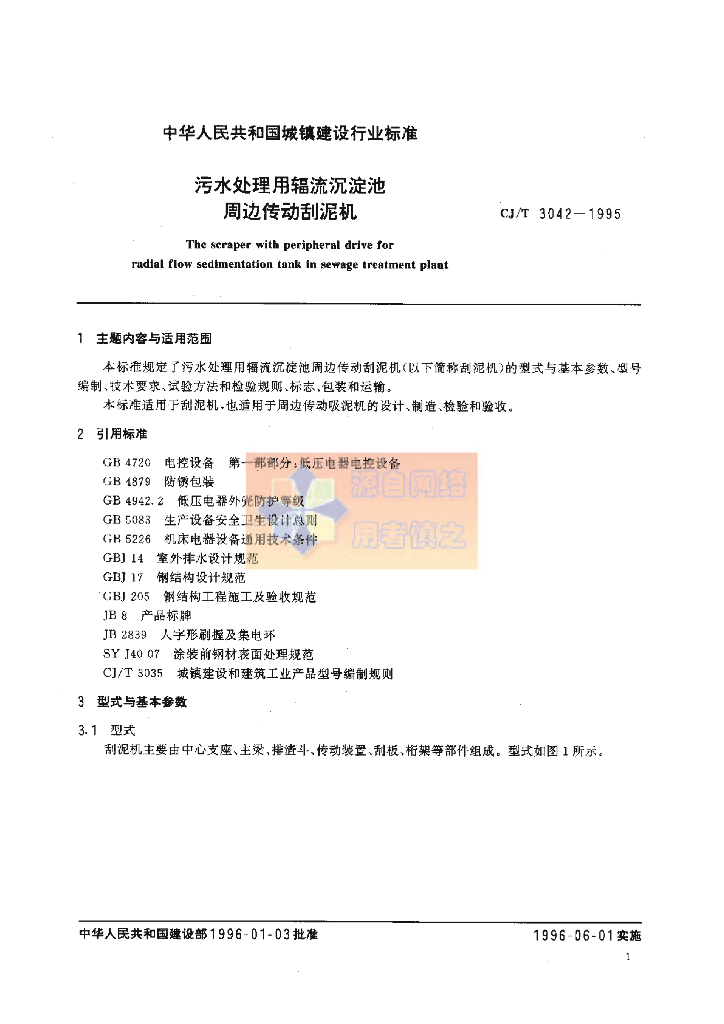 CJ/T 3042-1995 污水处理用辐流沉淀池周边传动刮泥机