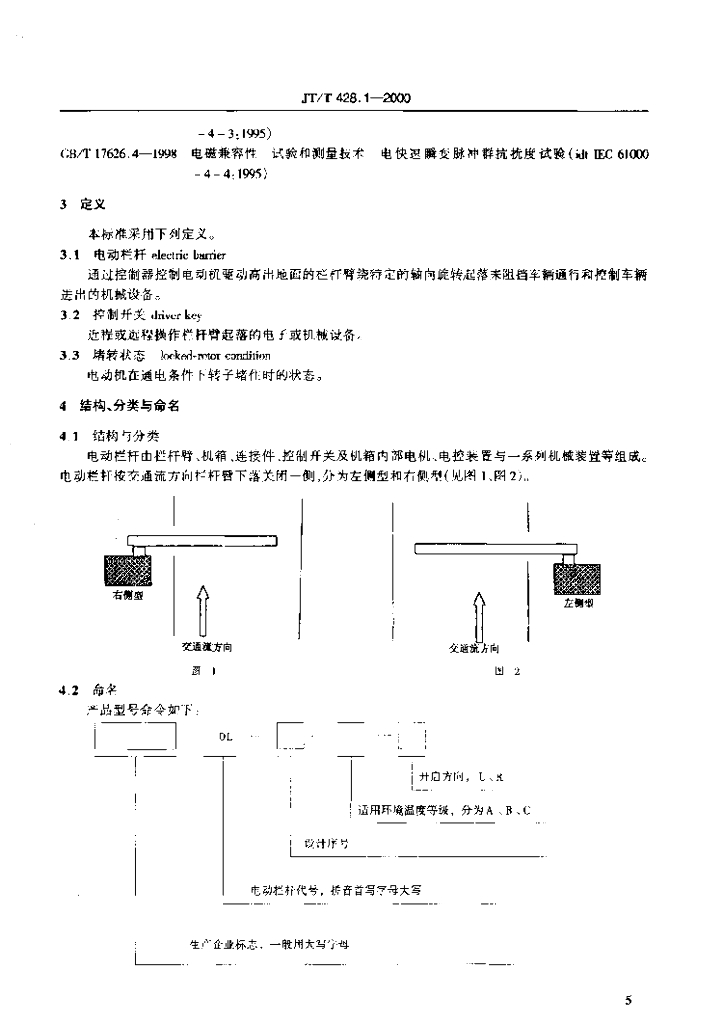 JT/T 428.1-2000 收费栏杆技术条件 第1部分:电动栏杆