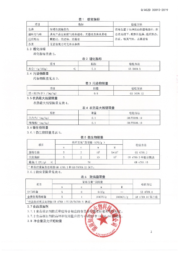 Q/AGZD 0001S-2019 酸仁甘麦固体饮料