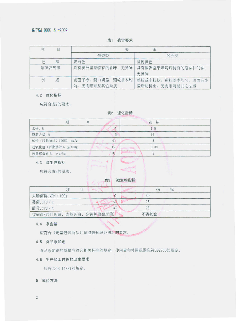 Q/YKJ 0001S-2009 澳洲坚果
