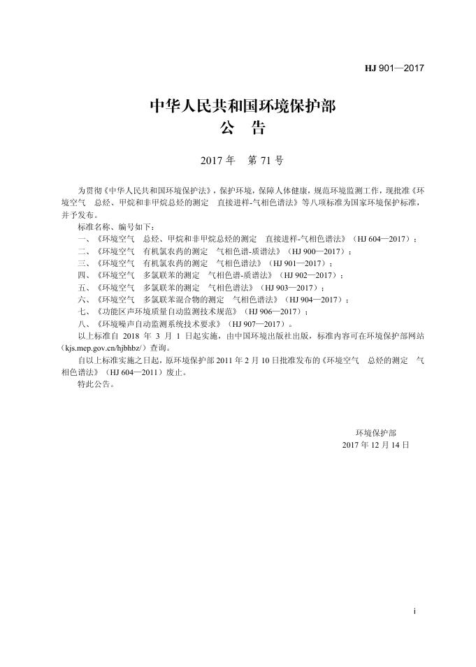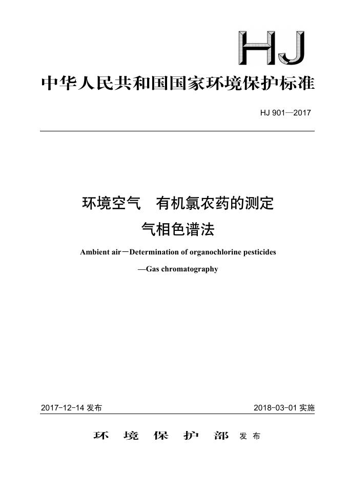 HJ 901-2017 环境空气 有机氯农药的测定 气相色谱法