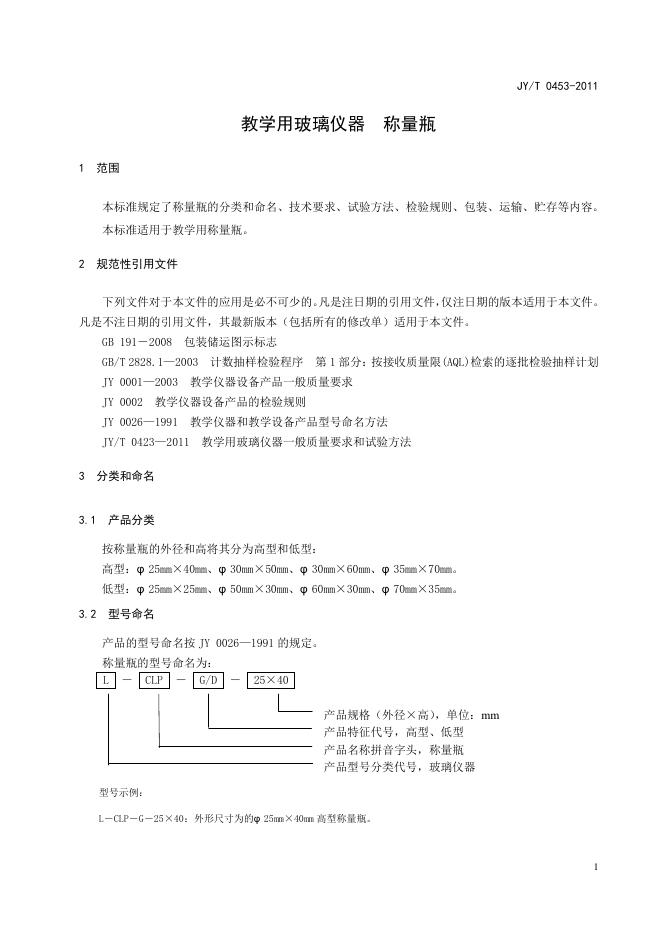 JY/T 0453-2011 教学用玻璃仪器 称量瓶