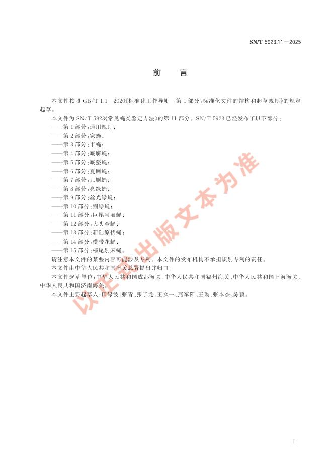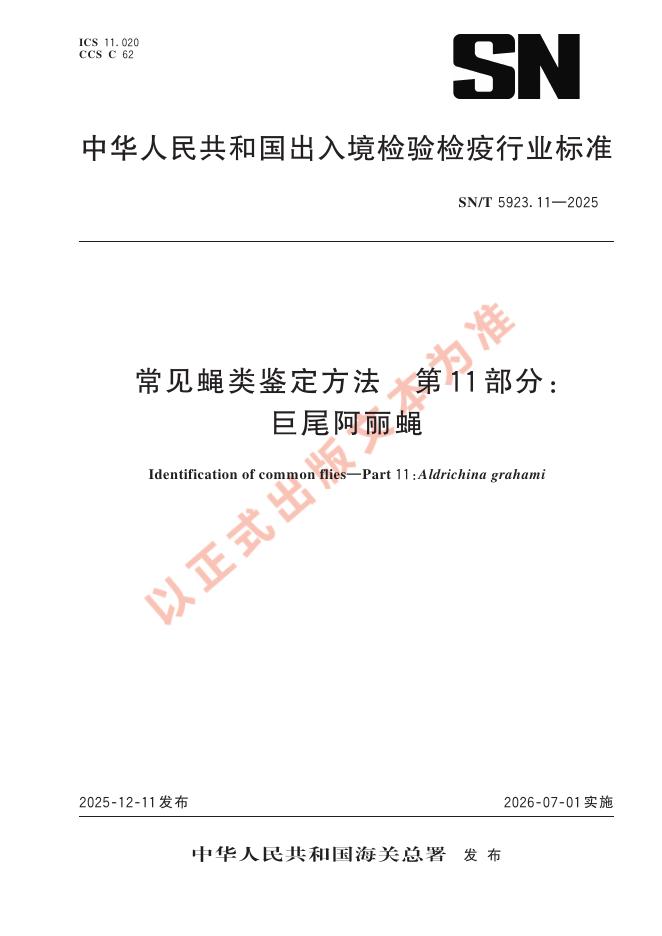 SN/T 5923.11-2025 常见蝇类鉴定方法 第11部分:巨尾阿丽蝇