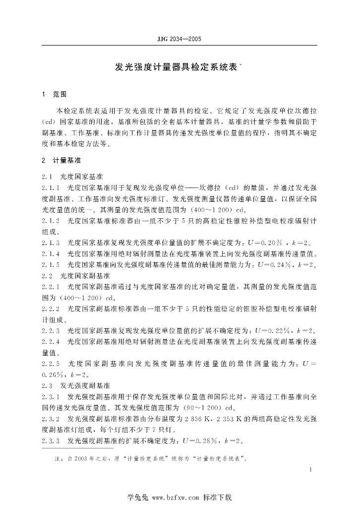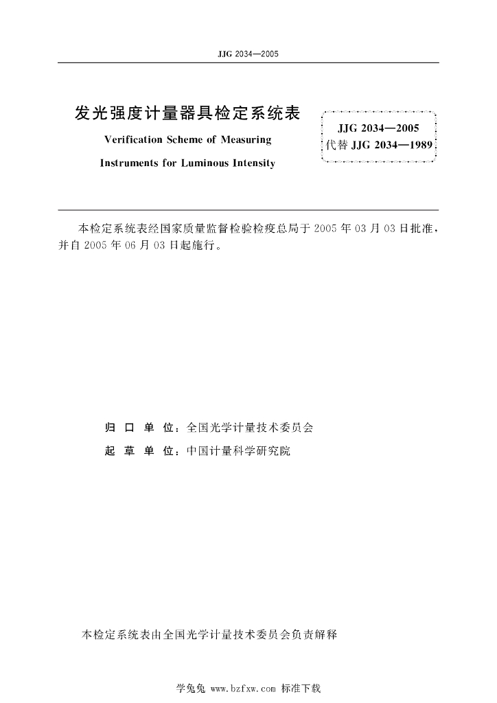 JJG 2034-2005 发光强度计量器具