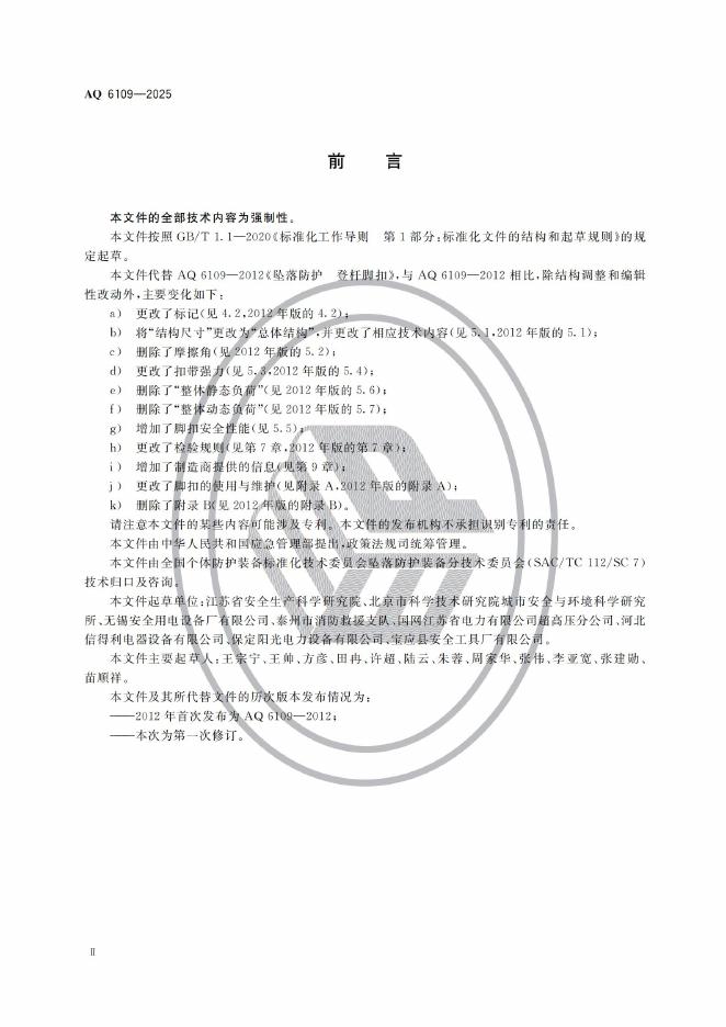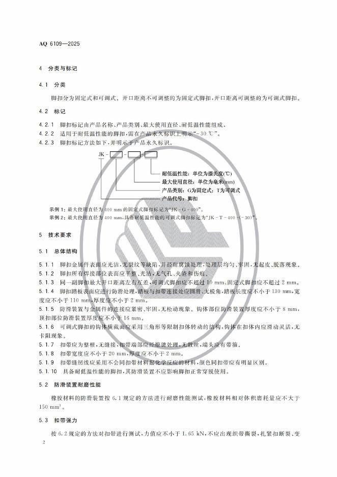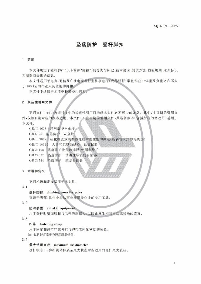 AQ 6109-2025 坠落防护 登杆脚扣