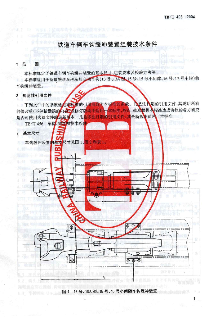 TB/T 493-2004 铁道车辆车钩缓冲装置组装技术条件