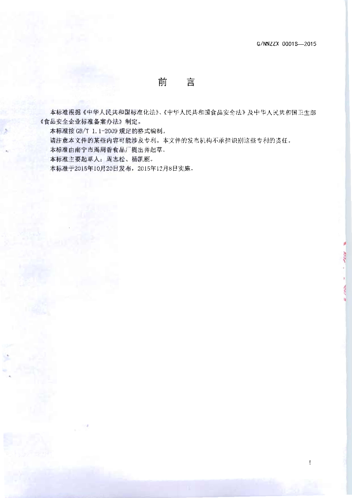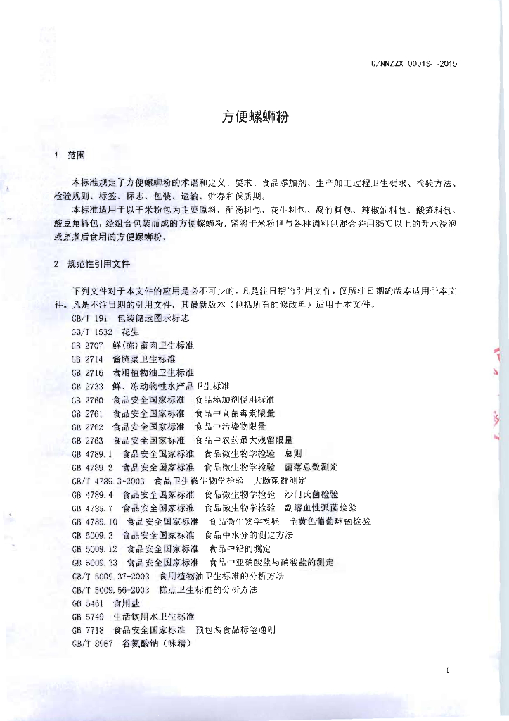 Q/NNZZX 0001S-2015 南宁市周周香食品厂 方便螺蛳粉
