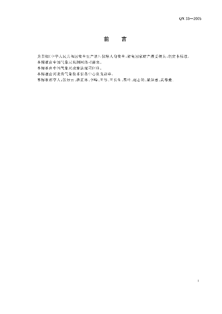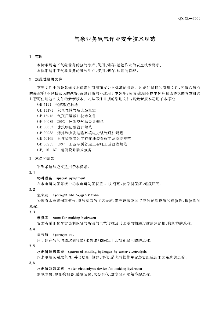 QX 33-2005 气象业务氢气作业安全技术规范