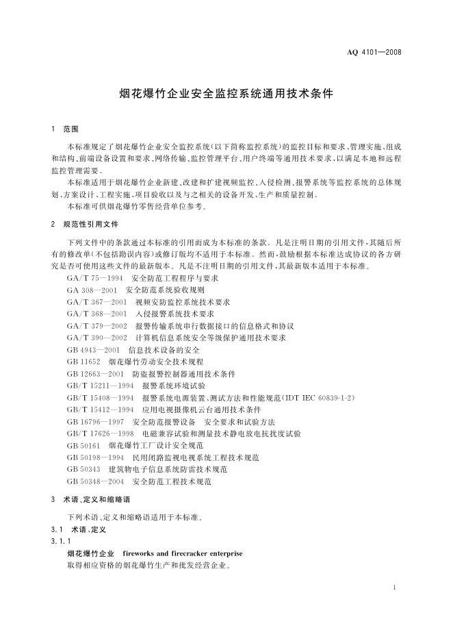 AQ 4101-2008 烟花爆竹企业安全监控系统通用技术条件