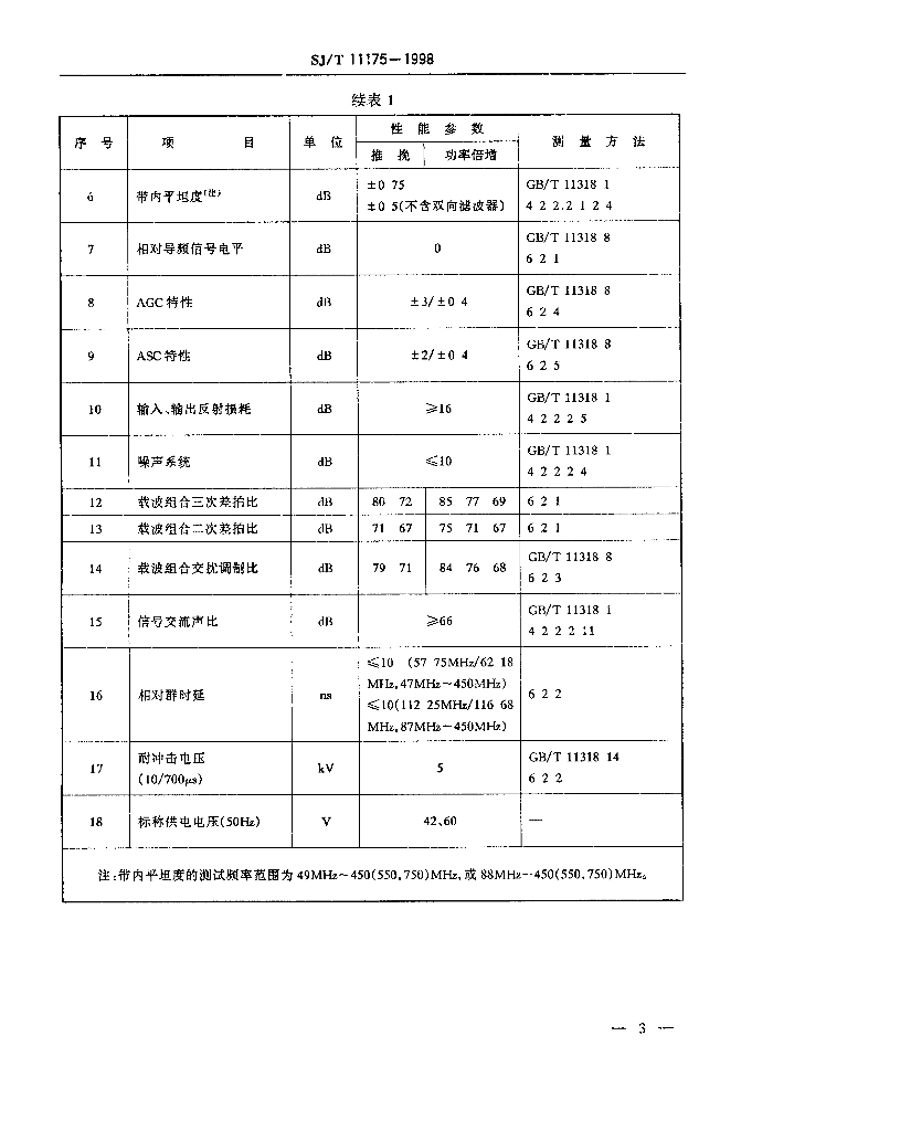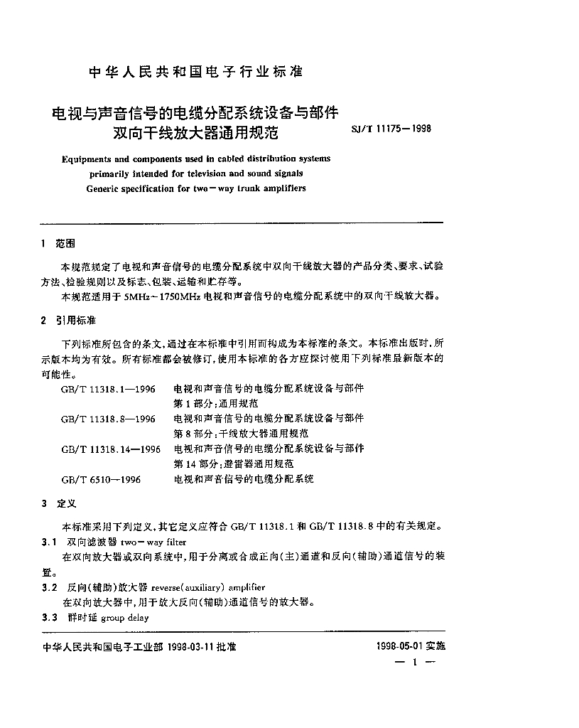 SJ/T 11175-1998 电视与声音信号的电视分配系统设备与部件 双向干线放大器通用规范