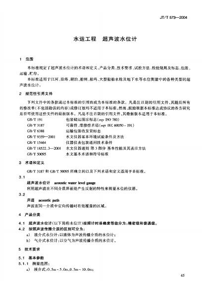 JT/T 573-2004 水运工程 超声波水位计