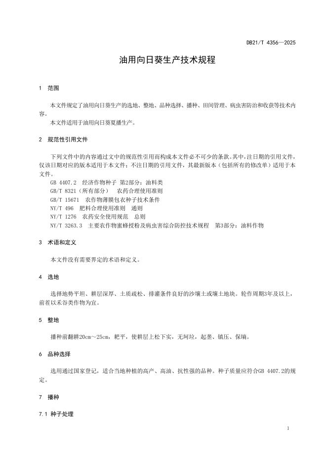 DB21/T 4356-2025 油用向日葵生产技术规程
