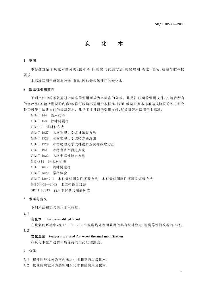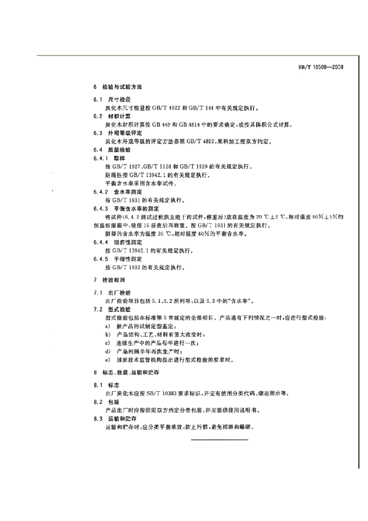 SB/T 10508-2008 炭化木