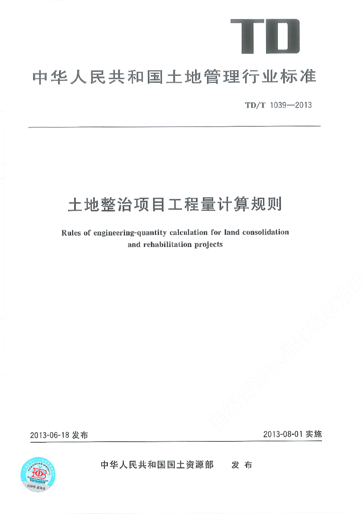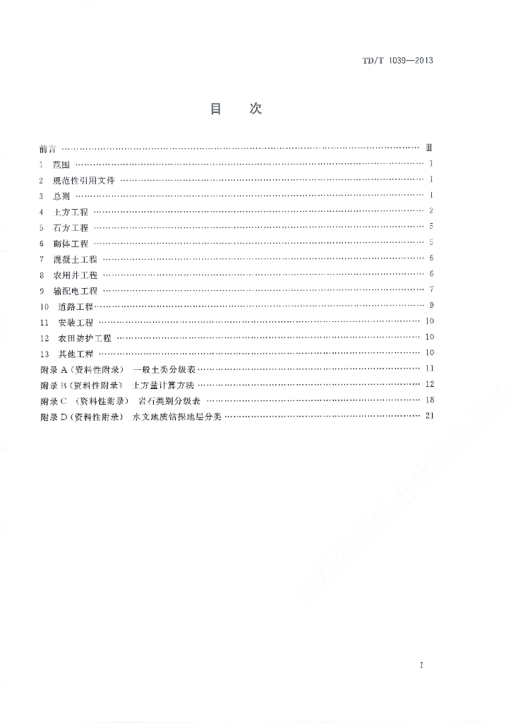 TD/T 1039-2013 土地整治项目工程量计算规则