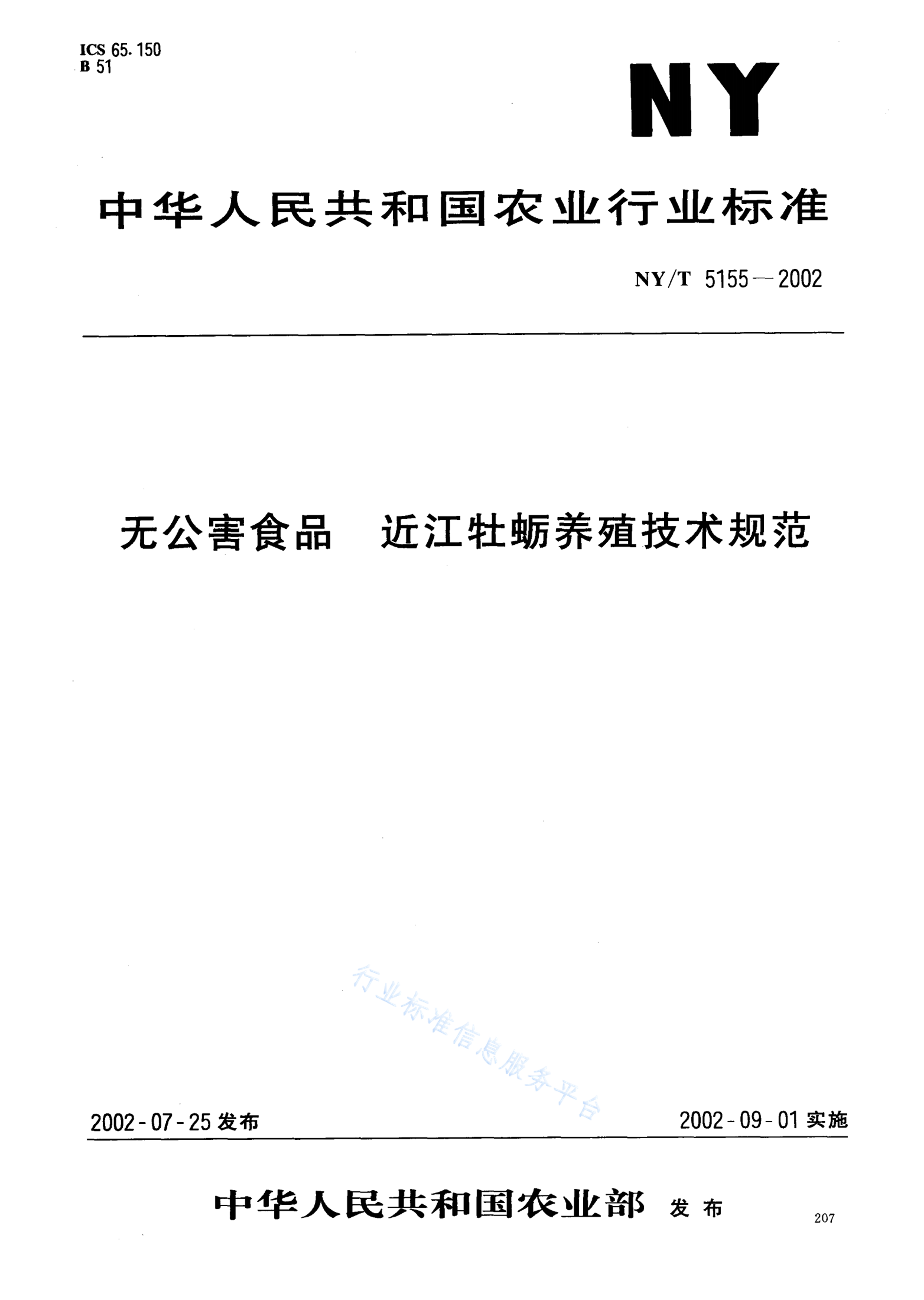 NY/T 5155-2002 无公害食品 近江牡蛎养殖技术规范