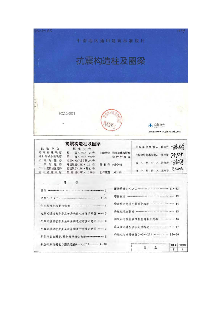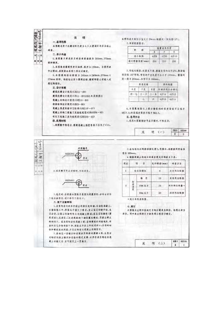 92ZG001 抗震构造柱及圈梁图集(中南标)