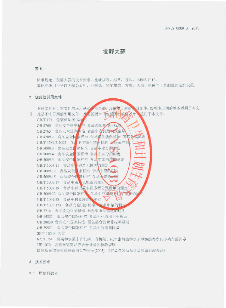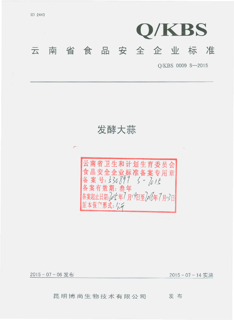 Q/KBS 0009S-2015 昆明博尚生物技术有限公司 发酵大蒜