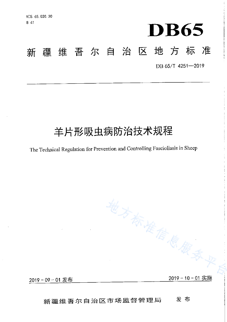 DB65/T 4251-2019 羊片形吸虫病防治技术规程