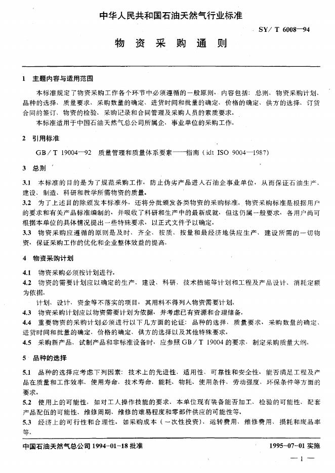 SY/T 6008-1994 物资采购通则