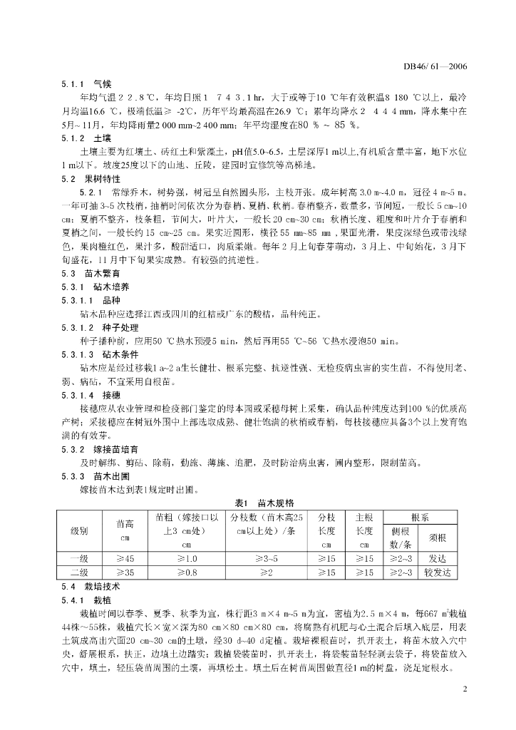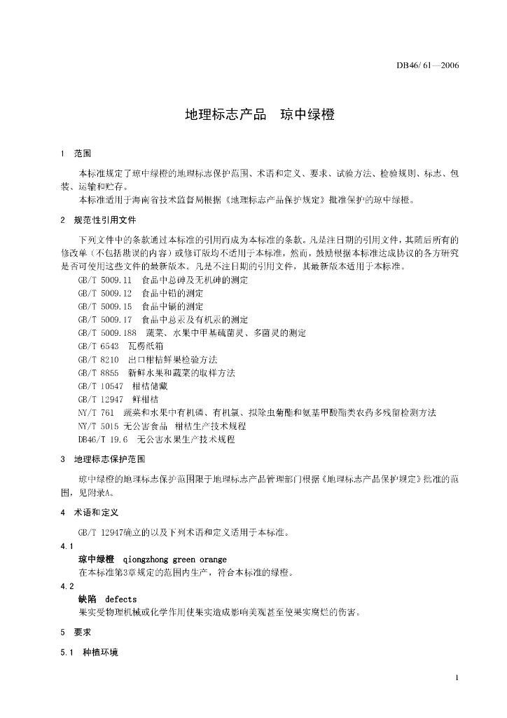 DB46/ 61-2006 地理标志产品 琼中绿橙