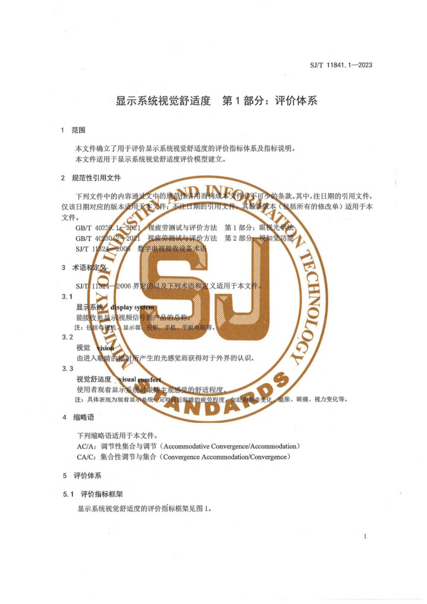SJ/T 11841.1-2023 显示系统视觉舒适度 第1部分:评价体系