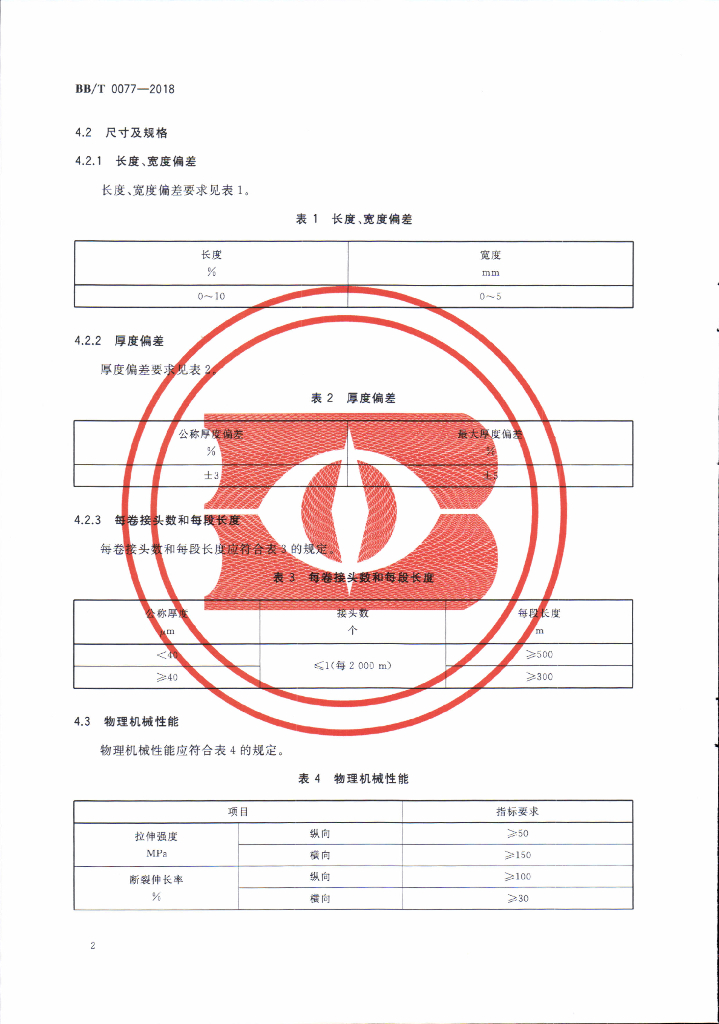BB/T 0077-2018 包装用双向热收缩型聚酯薄膜