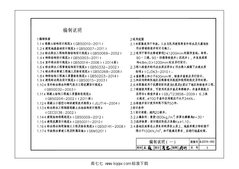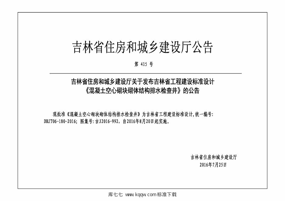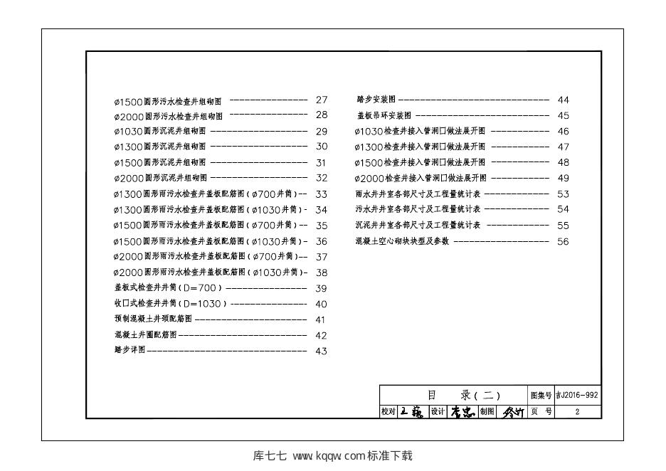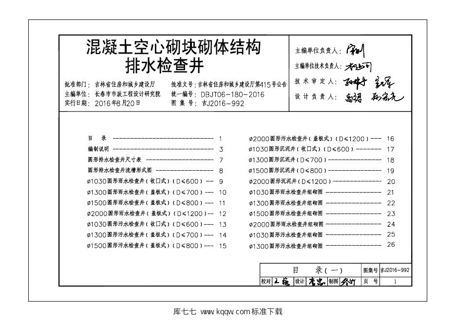 吉J2016-992 混凝土空气砌块砌体结构排水检查井图集