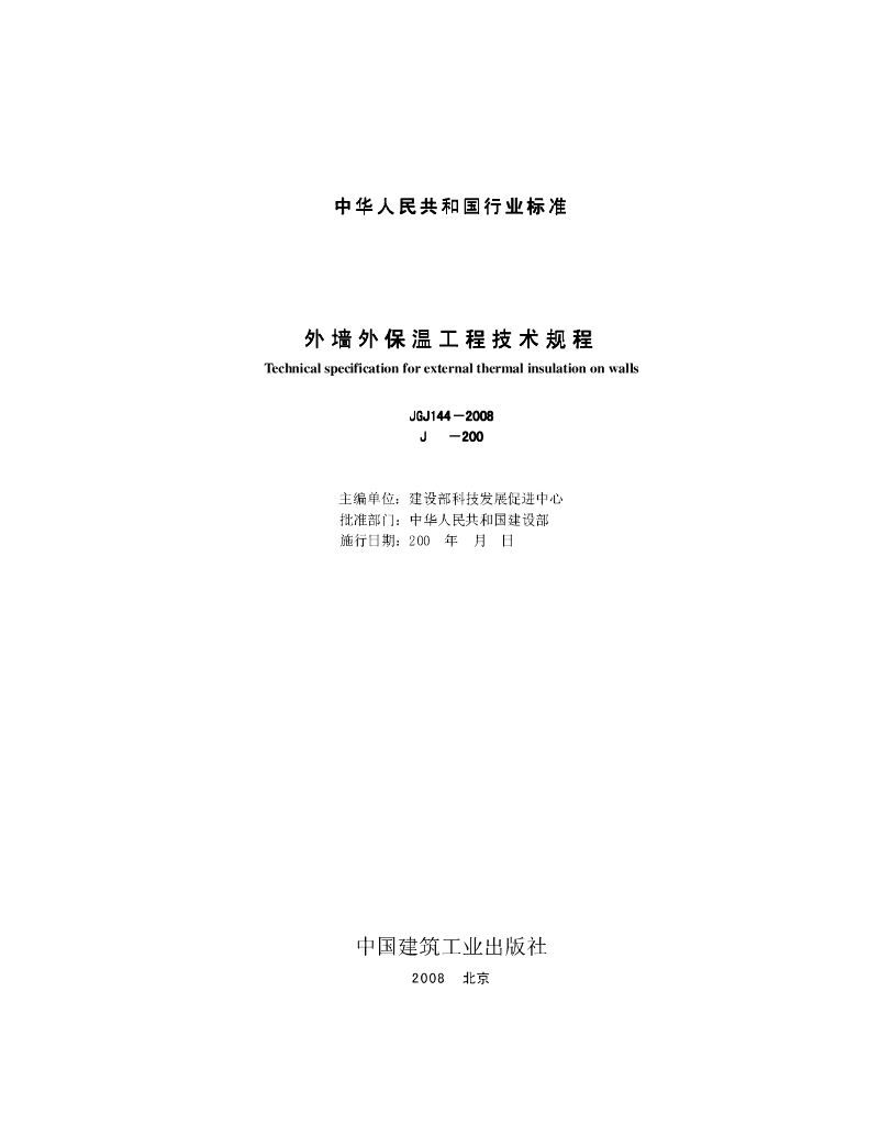 JGJ 144-2008 外墙外保温工程技术规程(征求意见稿)