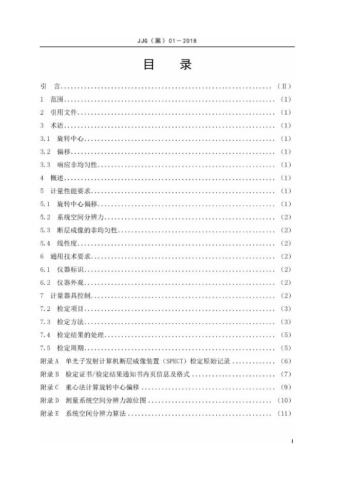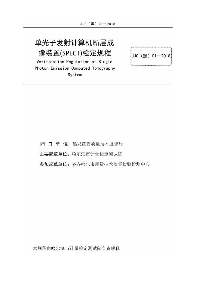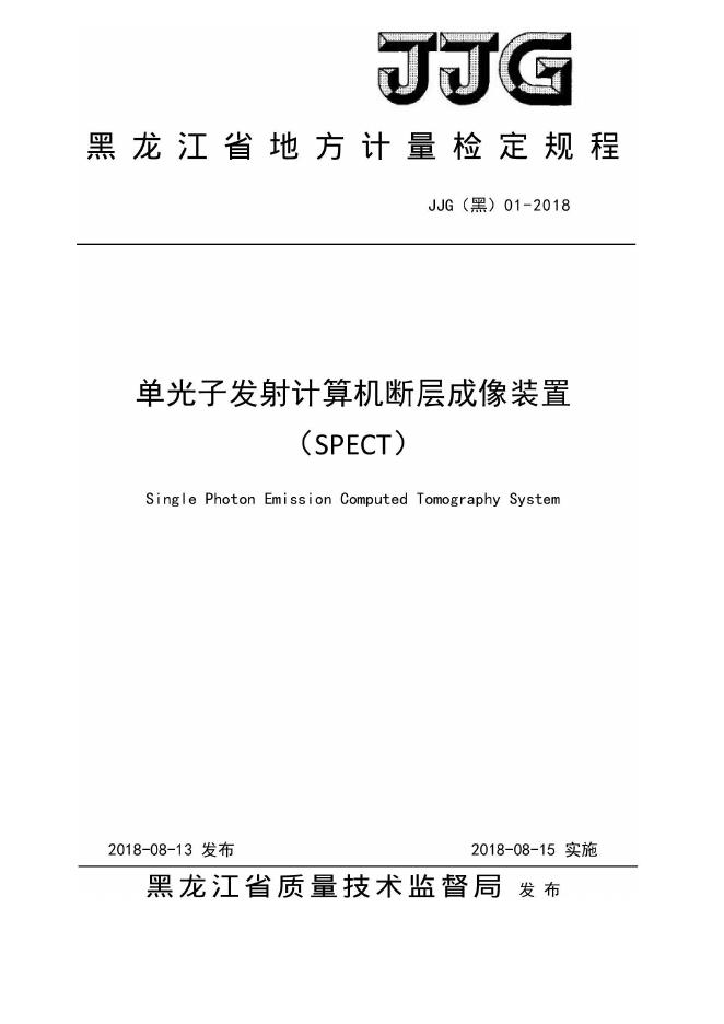 JJG(黑)01-2018 单光子发射计算机断层成像装置(SPECT)检定规程