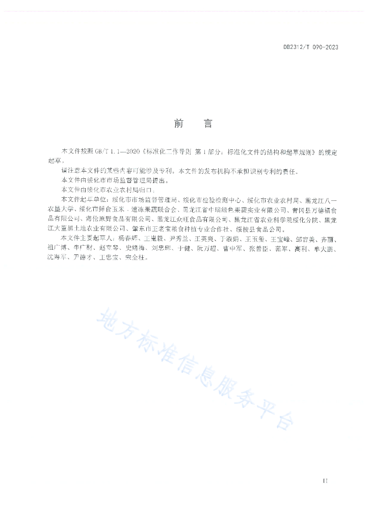 绥化市市场监督管理局、绥化市检验检测中心、绥化市农业农村局、黑龙江八一农垦大学、绥化市鲜食玉米.速冻果蔬联合会、黑龙江省中瑞绿色果蔬实业有限公司、青冈县万德福食品有限公司、海伦原野食品有限公司、黑龙江众旺食品有限公司、黑龙江省农业科学院绥化分院、黑龙江大董黑土地农业有限公司、肇东市王老宝粮食种植专业合作社、绥棱县食品公司