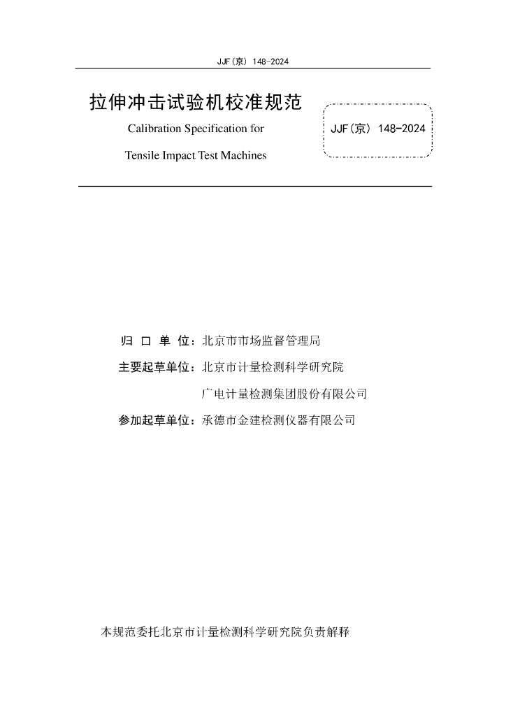 JJF(京)148-2024 拉伸冲击试验机校准规范