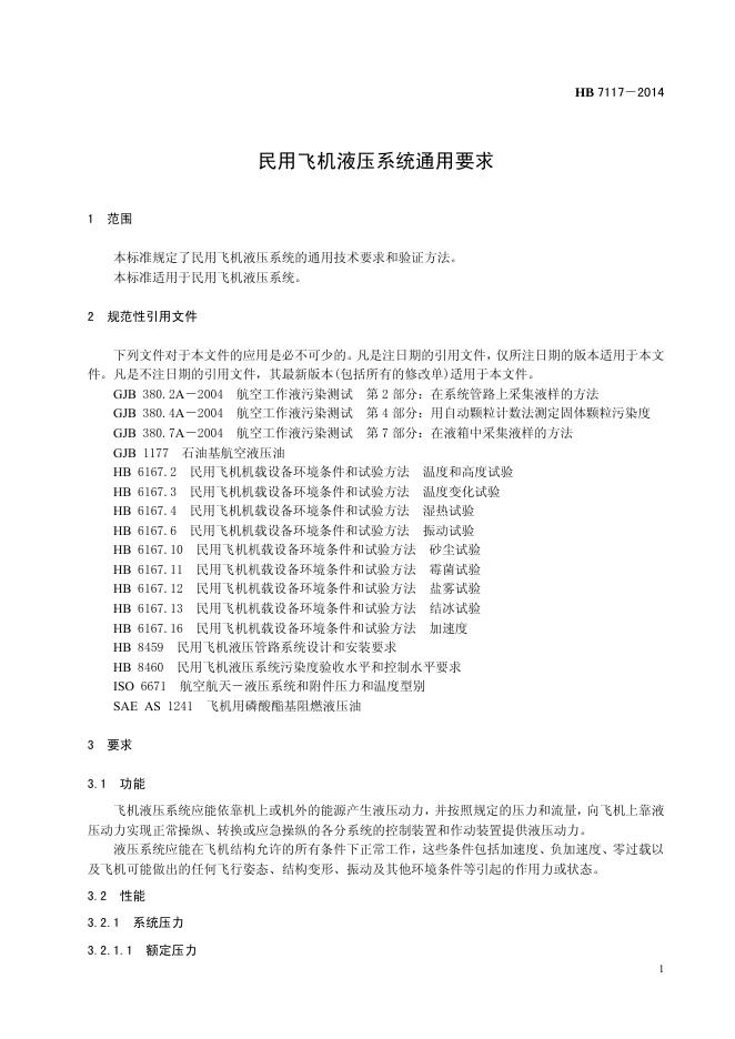 HB 7117-2014(2017) 民用飞机液压系统通用要求