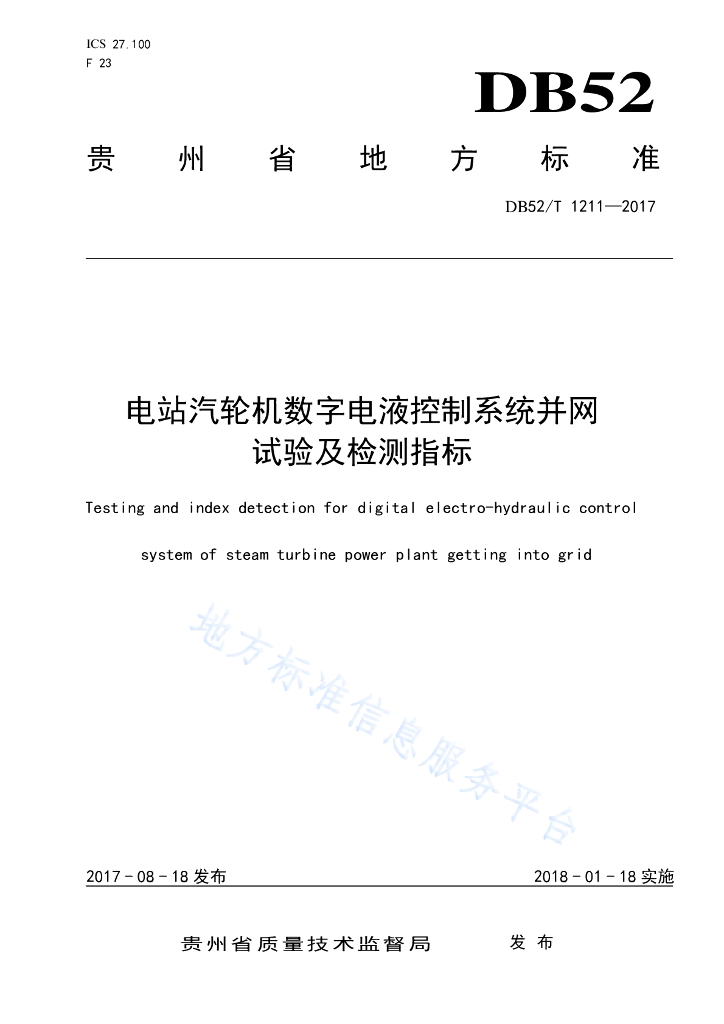 DB52/T 1211-2017 电站汽轮机数字电液控制系统并网试验及检测指标