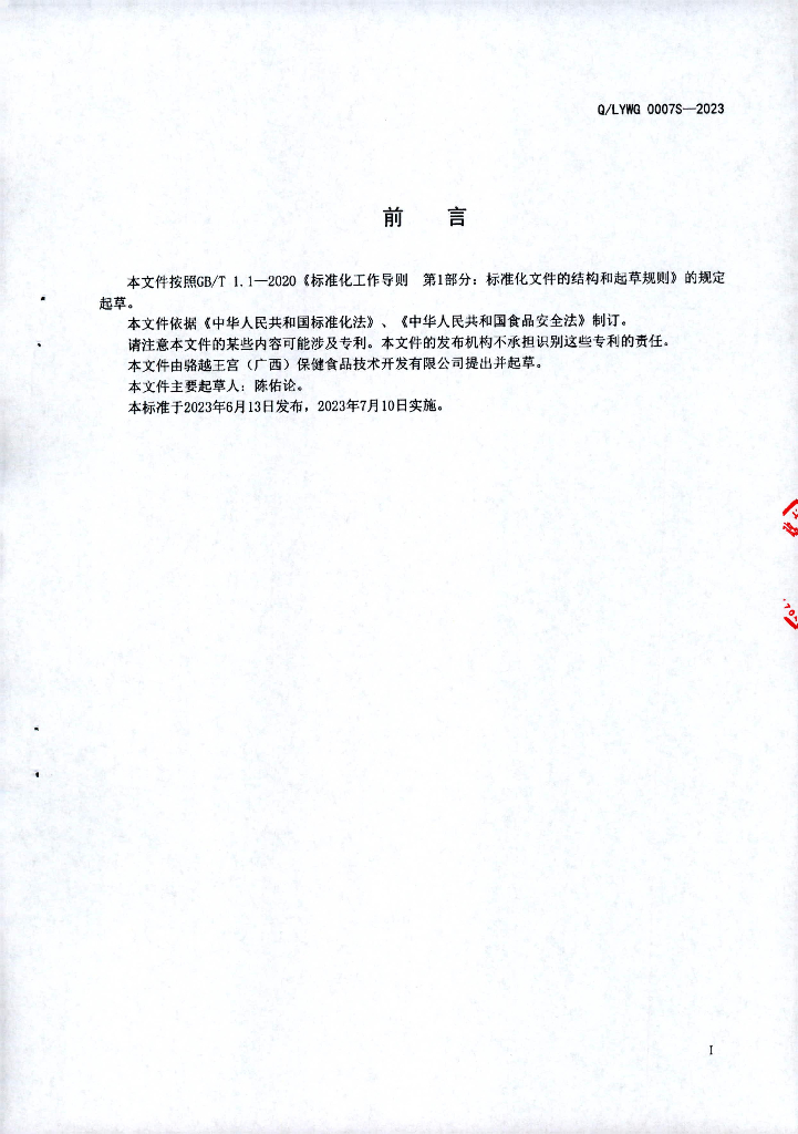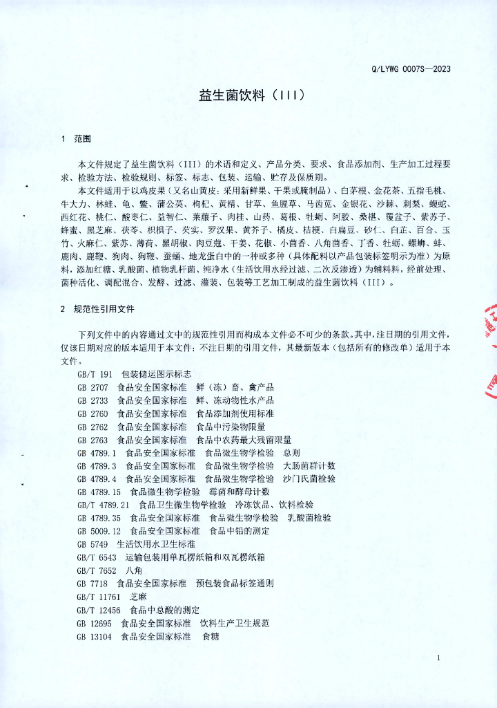 Q/LYWG 0007S-2023 益生菌饮料(III)