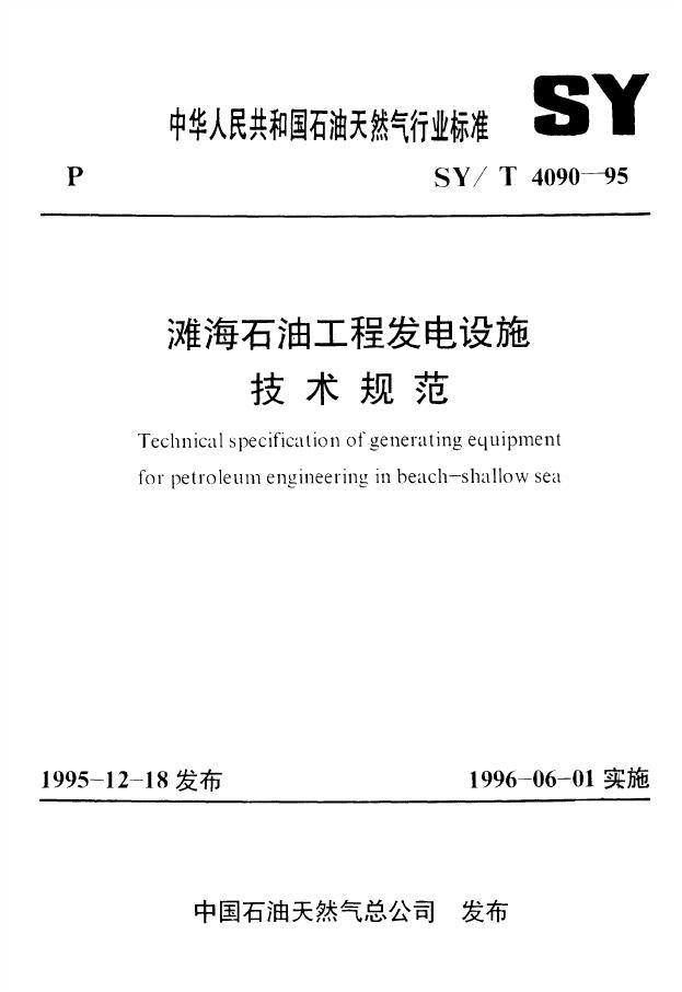 SY/T 4090-1995 滩海石油工程发电设施技术规范