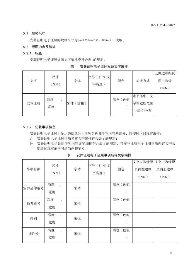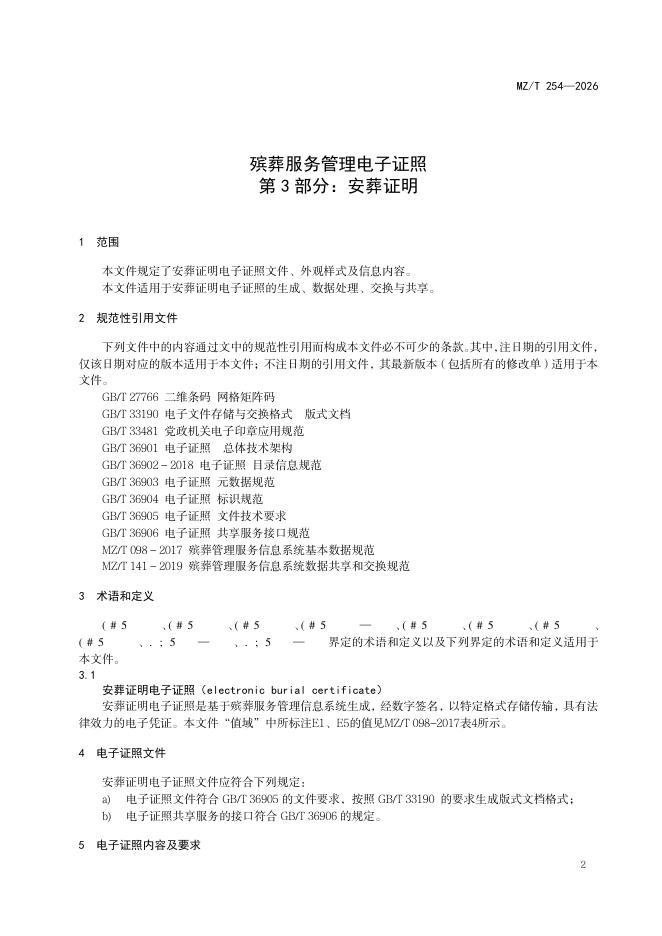 MZ/T 254-2026 殡葬服务管理电子证照 第3部分:安葬证明