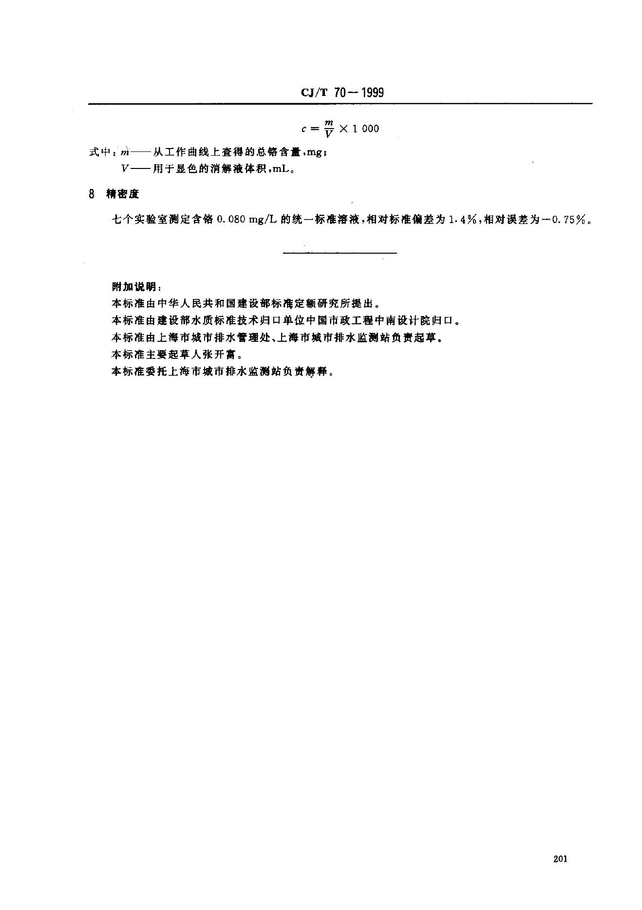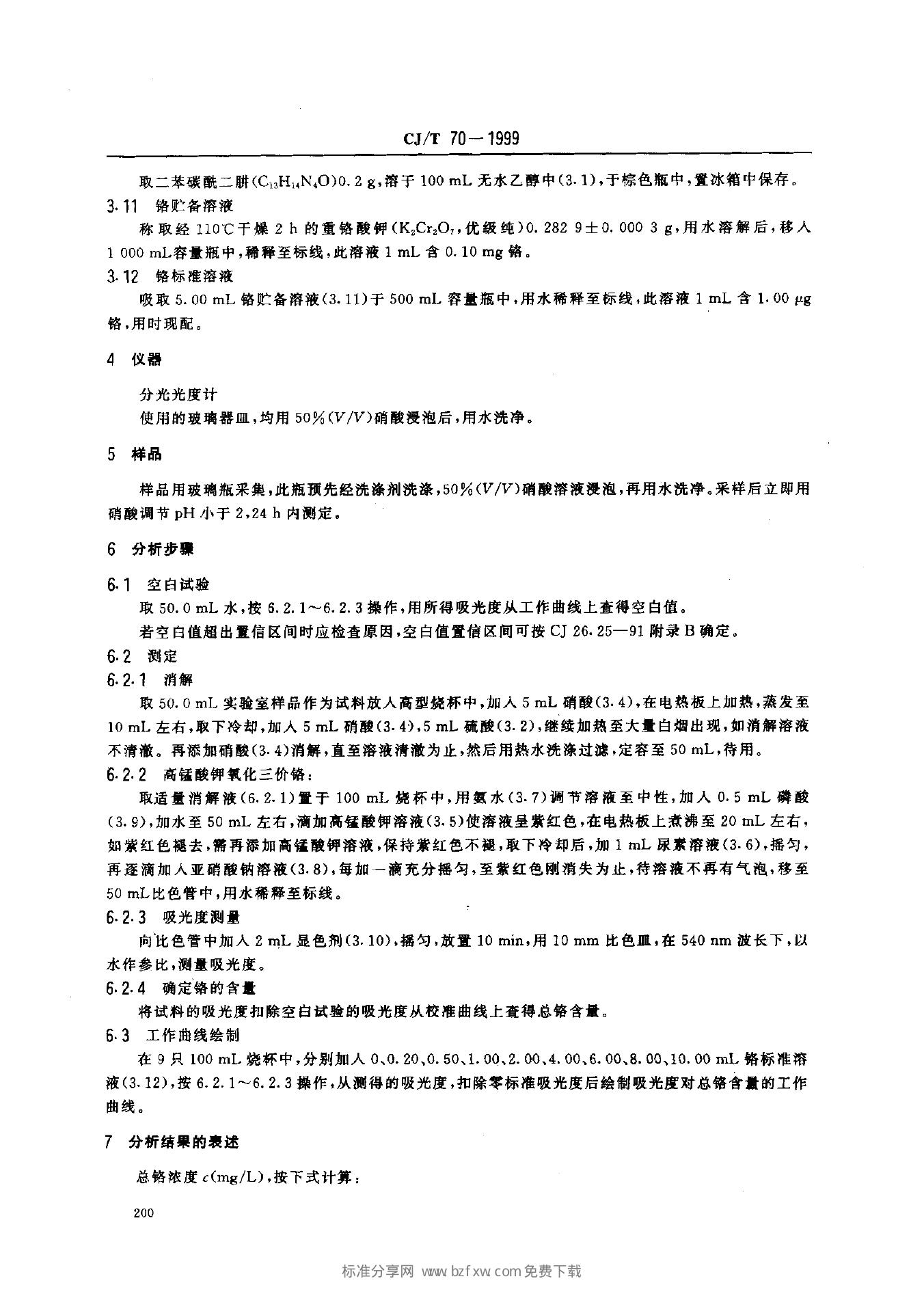 CJ/T 70-1999 城市污水 总铬的测定 二苯碳酰二肼分光光度法