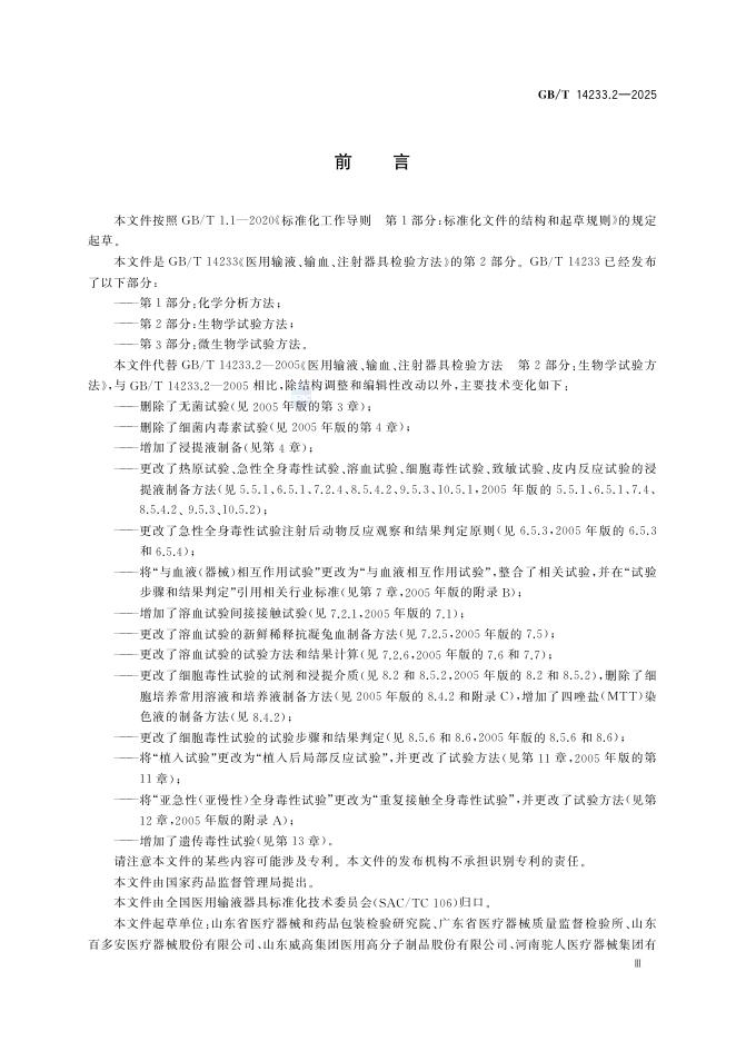 GB/T 14233.2-2025 医用输液、输血、注射器具检验方法 第2部分:生物学试验方法