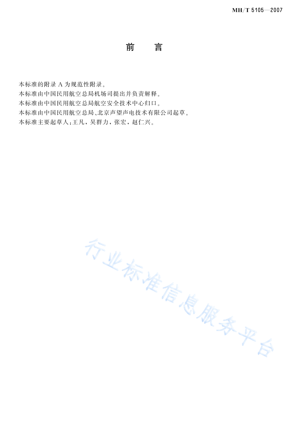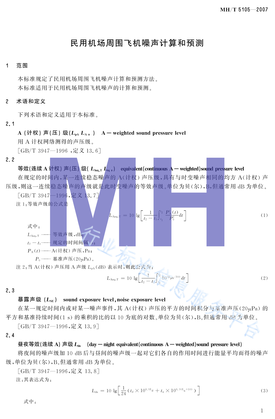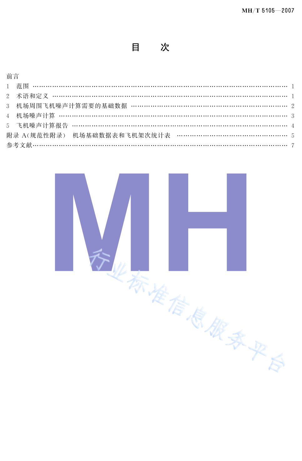 MH/T 5105-2007 民用机场周围噪声计算和预测规范