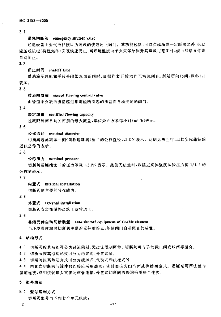 HG 3158-2005 液化气体罐车用紧急切断阀